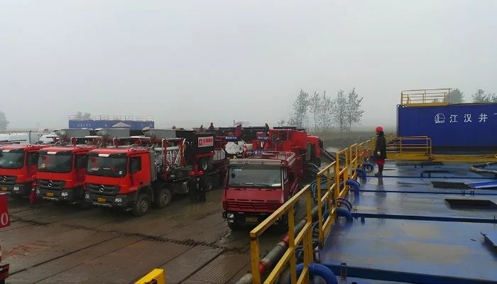 压裂部门拥有两个作业队,35台2500水马力压裂车,5台混砂车,4台仪表车,5台管汇车;可为常规井及特殊井提供酸化压裂服务。